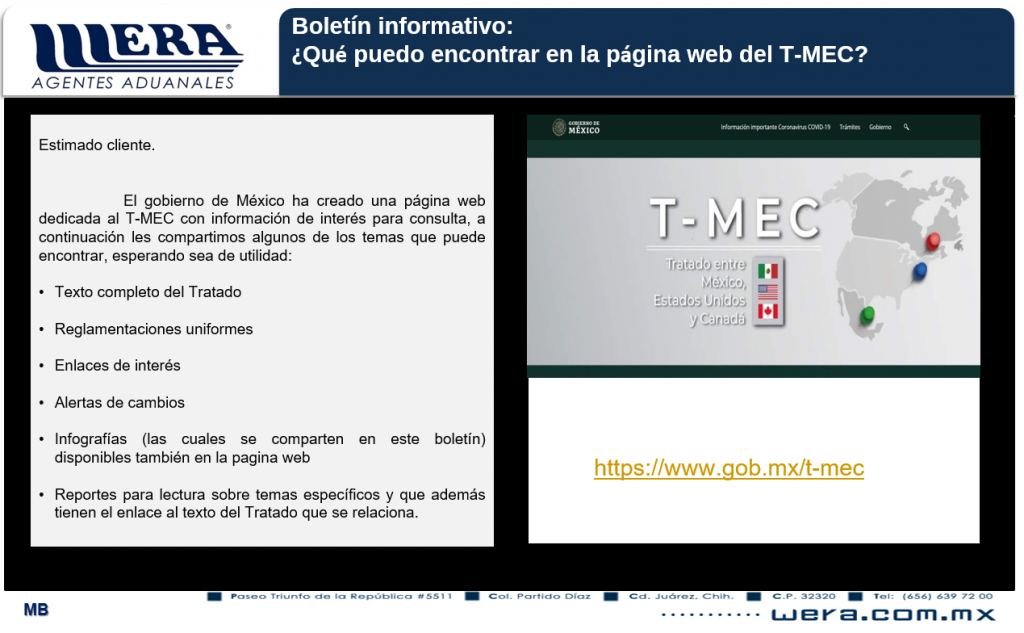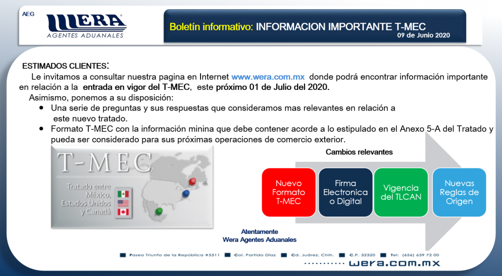 Boletín informativo: INFORMACIÓN IMPORTANTE T-MEC | 01 de Julio 2020