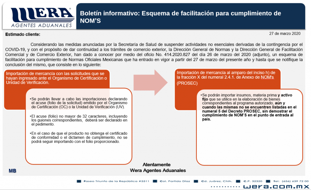 Boletín informativo: Esquema de facilitación para cumplimiento de NOM’S | EMPRESAS IMMEX PROSEC